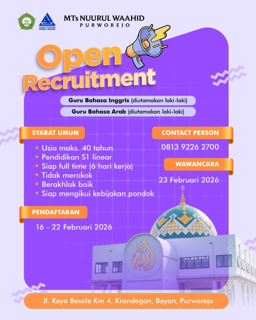 Open Recruitment Tenaga Pendidik Pondok Pesantren Nurul Wahid